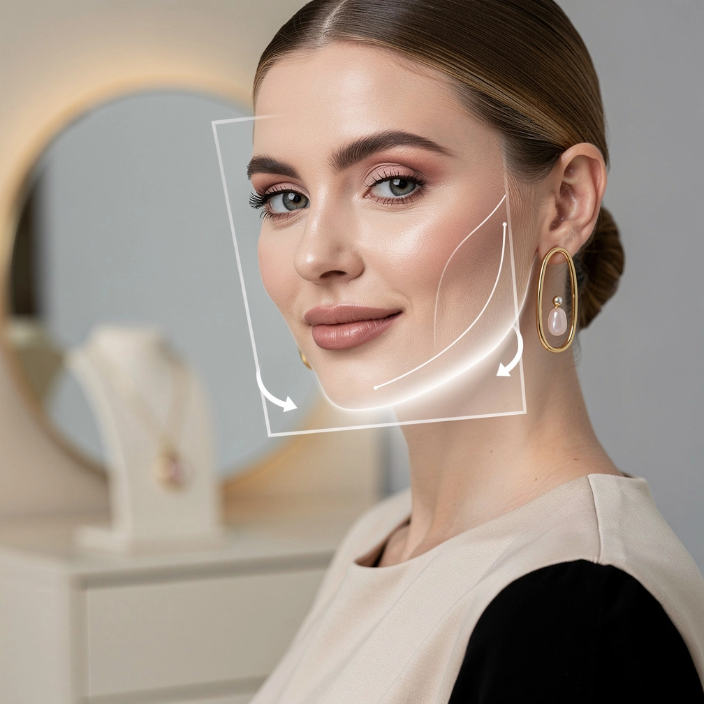 On peut comparer cet angle mandibulaire à la base d’un tableau : si elle est très droite, on choisira un cadre plus doux ; si elle est peu lisible, un cadre plus marqué l’aide à se détacher. Les boucles d’oreilles pendantes qui dépassent la ligne de la mâchoire créent une continuité verticale, tandis que les modèles plus courts concentrent le regard au niveau des lobes. Connaître cet angle vous permet donc d’anticiper l’“effet de projection” de chaque paire, et de décider si vous souhaitez accentuer votre caractère ou au contraire lisser les contours.